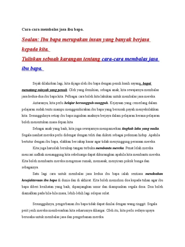 Bahasa nadi bangsa karangan upsr cara cara membalas . Pengorbanan ibu bapa untuk melahirkan dan membesarkan kita sangat besar dan tidak dapat dinilai dengan wang ringgit. Cara cara menghargai jasa ibu bapa pdf. Kita hendaklah membalas jasa baik mereka. Mereka merupakan golongan yang paling berjasa kepada keluarga masyarakat dan negara.